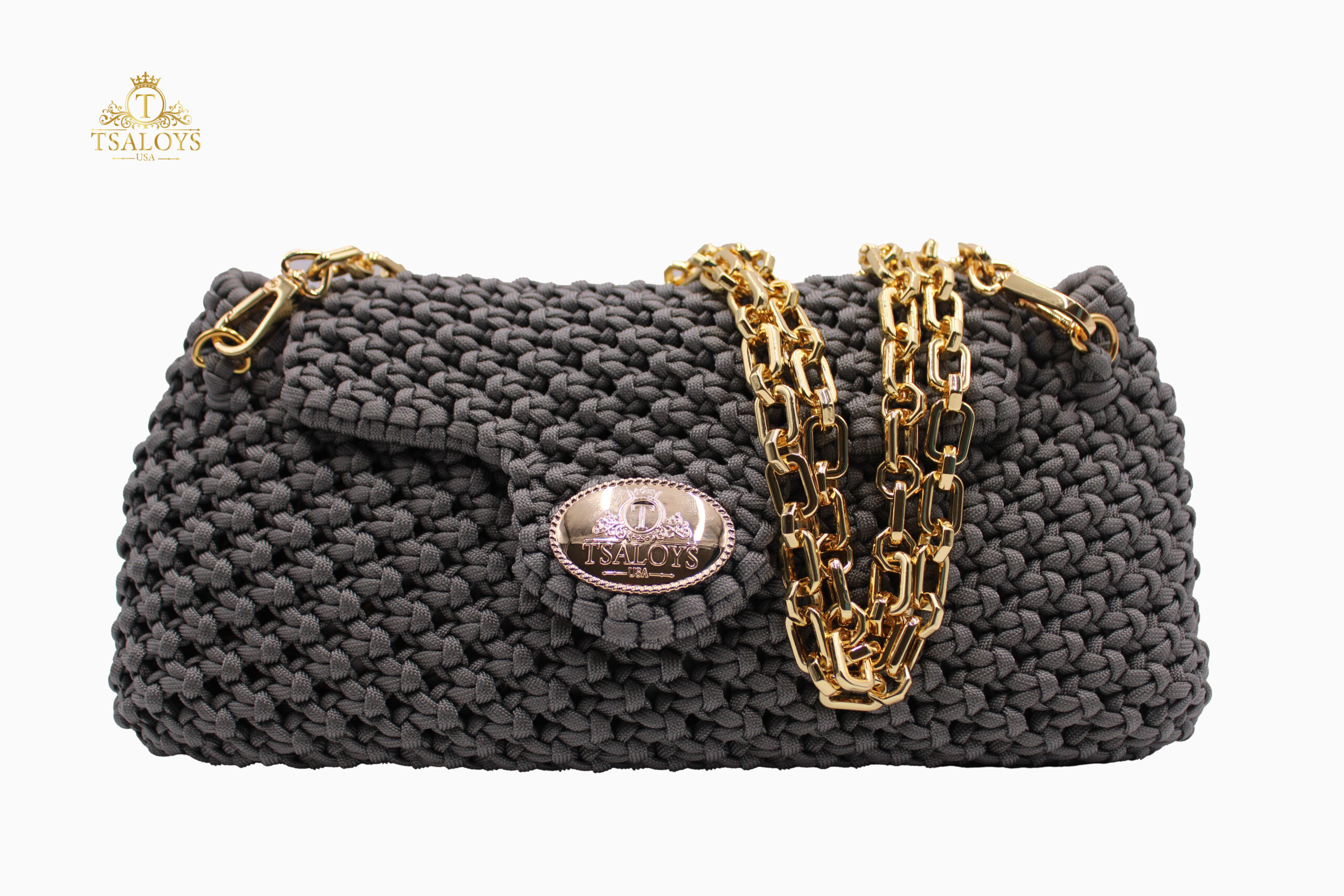 Flap and closure in TSALOYS oval LOGO made with zinc alloy and golden magnetic clasp.
